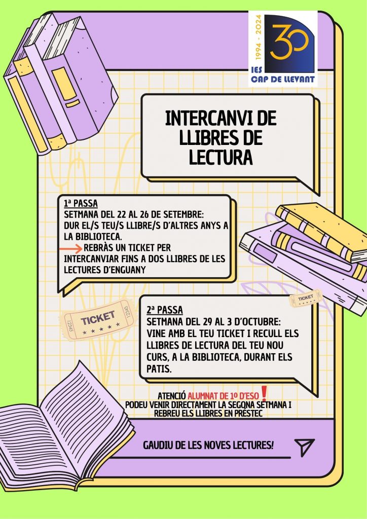 Un any més, engegam el programa d’intercanvi i reutilització de llibres de lectura. Es tracta de promoure que tothom que tengui llibres de lectura de cursos anterior que tornen a llegir-se aquest any, els pugui canviar per les lectures del curs actual.