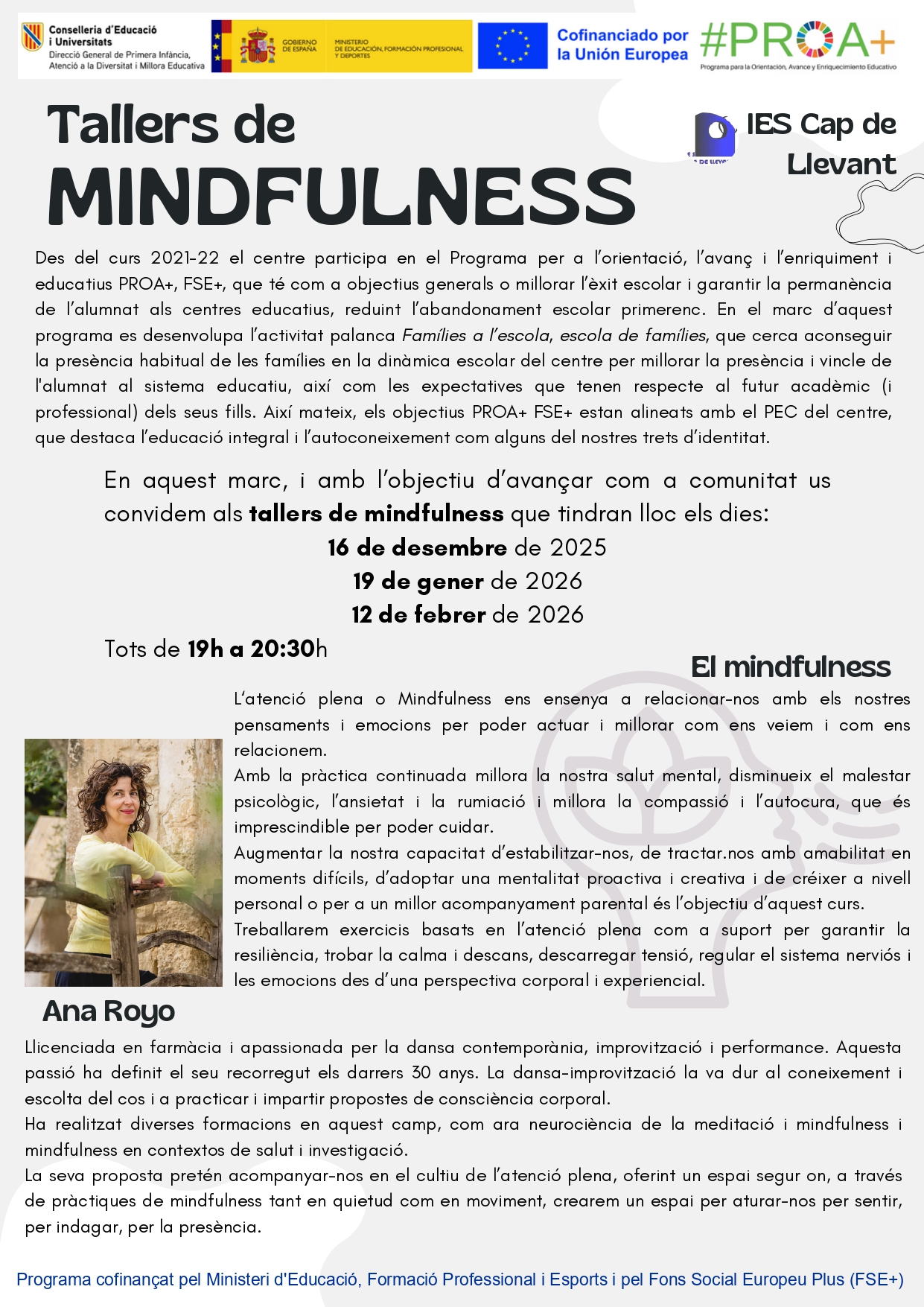 La Comissió espera que aquest acte sigui una manera de deixar una petjada positiva al nostre institut. Igual que un arbre necessita aigua, llum i atenció per créixer, també el nostre centre necessita que totes i tots el cuidem, el respectem i fem créixer coses bones: amistat, solidaritat, curiositat, respecte, pau…